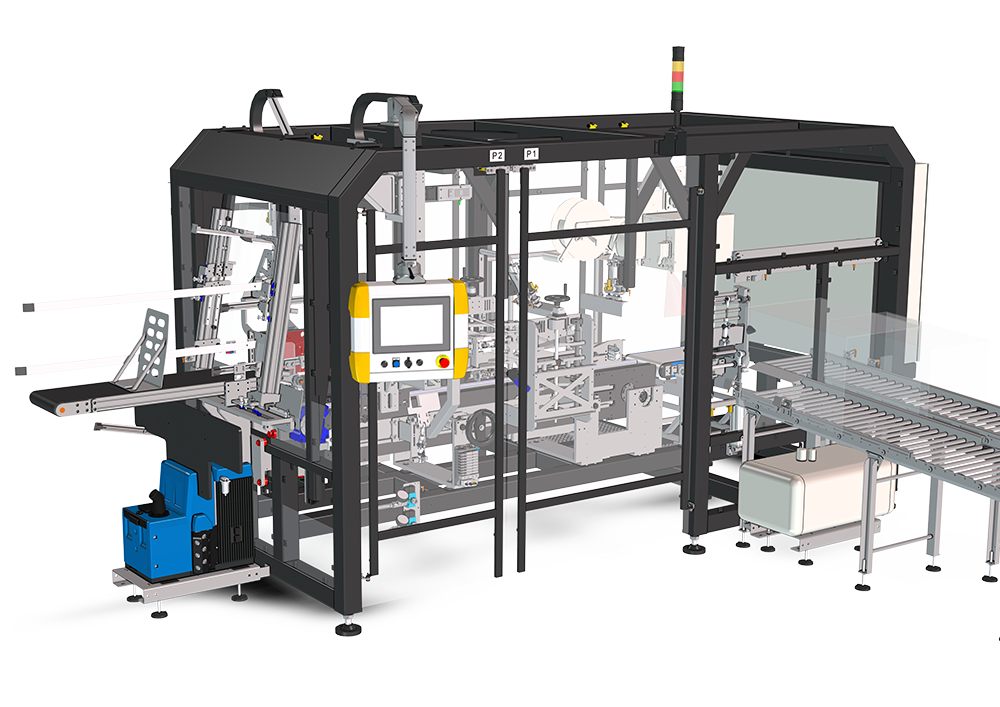 L’encaisseuse side load est un équipement ergonomique grâce à ses portes d’accès toutes hauteurs de chaque côté de la machine, son magasin de cartons situé à 900 mm du sol et son écran IHM qui peut s’orienter en fonction des besoins de l’opérateur.